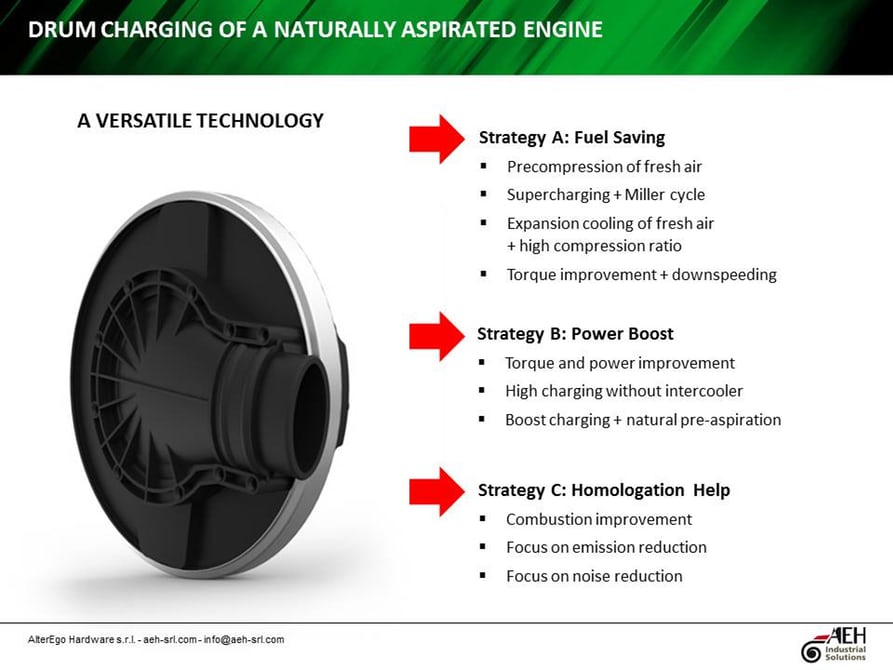 Alter Ego’s Drum Charger: exterior viewThe Drum Charger is superficially similar to a turbo; it harvests leftover exhaust gas energy to pressurize the air intake. But instead of using complex, fast-moving turbines and compressors, it does so in a very mechanically simple way.