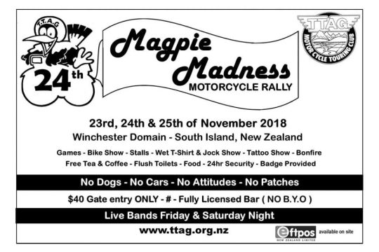 Go to the https://www.ttag.org.nz website to find out more about the Magpie Madness Rally including booking tickets, and hit the ‘Book Event’ button above to tell others you are going!