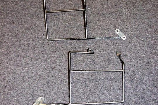 Home made racks for the DR650. Made from 8mm solid bar. Worked great with my Wolfman luggage. The right side fitted to a bike. I couldn’t find a decent pic...