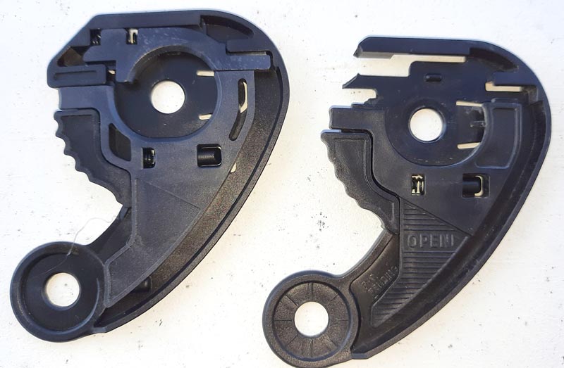 New Aliexpress ICON part on the left, broken factory HJC part on the right.