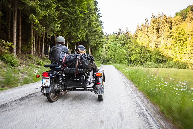 At the Ural headquarters in Austria we met the MD, Hari Schwaighofer, and a fleet of rugged Soviet-era outfits. After a quick introduction to driving, my passenger, Adam, loaded our gear and jumped in. James, our photographer, got in Hari’s outfit and we all set off. I was expecting a gentle ride on a rickety old machine from a bygone era, the next two days would slap that stupid idea completely out of my mind.