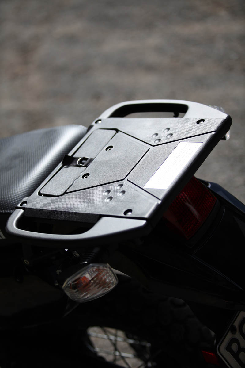 The subframe appears to be the same as always, with a tall 890mm seat height, but there’s now a more modern luggage rack on the back with handy access to the factory tool kit.