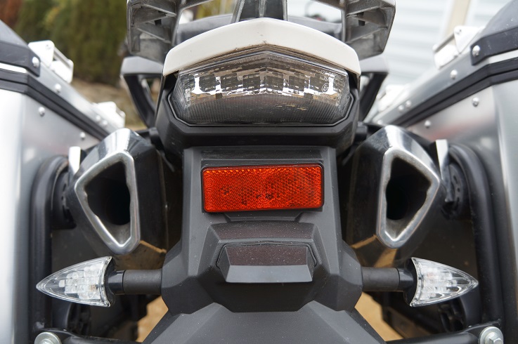 The fuel tank reputedly holds 18 litres so a good 250 mile range is theoretically possible, however when the fuel gauge is telling me there’s nothing left and the orange light is flashing (after 145 miles), I can only fit 9.5 litres in! I’ve since ridden to 210 miles but only managed to sqeeze in 13.3 litres, so promise I’ll run it dry just to see. The tank is steel, so a magnetic tankbag will fit and if you crash it’ll forever bear the scars of some foreign travail; a great talking point down the pub…